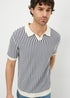 • Ecru Stripe Revere Knitted Polo Shirt