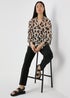 Make a statement in our striking Et Vous Beige Leopard Print Shirt. This gorgeous top is crafted from a sumptuous fabric, featuring a captivating leopard print that exudes wild sophistication. The relaxed shirt silhouette complements your figure effortlessly, while the v-neckline, a button up fastening, with a relaxed collar and long sleeves add a touch of elegance. Pair with tailored trousers and heeled boots for a chic office look or wear with denim jeans and sneakers for a casual yet stylish weekend outfit.