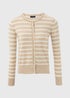 Learn moreThis beige and white striped crew button-through cardigan from Et Vous is a must-have for your casual wardrobe. Crafted from a soft and lightweight fabric and with a classic striped design, it offers both comfort and style. Perfect for layering over dresses or tops, this cardigan is sure to become a staple in your everyday attire. Pair with a simple cami and jeans for a casual daytime look or layer over a dress for added warmth and style.