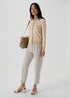 This beige and white striped crew button-through cardigan from Et Vous is a must-have for your casual wardrobe. Crafted from a soft and lightweight fabric and with a classic striped design, it offers both comfort and style. Perfect for layering over dresses or tops, this cardigan is sure to become a staple in your everyday attire. Pair with a simple cami and jeans for a casual daytime look or layer over a dress for added warmth and style.
