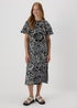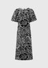 Learn moreStep into sophisticated elegance with our stunning black floral puff sleeve midi dress, a must-have for your fashion-forward wardrobe. This dress exudes effortless style, featuring a striking combination of black and white in a gorgeous bold floral print that is perfect for any occasion. The puffed short sleeves add a touch of style to this midi dress with a straight fit of the dress creates a comfortable and relaxed yet still flattering fit. For a chic office look, pair it with classic pumps and a tailored blazer or elevate your evening attire by adding statement jewellery and strappy heels.