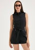 Learn moreSometimes, you just feel like stocking up on alternatives to dresses in the summer. Styled in classic black so it can be partnered with all your favourite shoes, this playsuit is crafted from a comfy linen blend and features silver button fastenings for easy on/off. Other key characteristics include a chic tie waist and a classic collar. Model Height: 5ft 9 1/2.