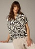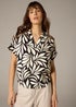 Et Vous Black Mono Palm Airflow Collared V-Neck Blouse - Size 16