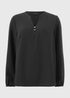 Instantly elevate your work-to-weekend wardrobe with this timeless black blouse our Et Vous collection. Crafted from a smooth, lightweight fabric, it drapes beautifully and offers all-day comfort. The design features a flattering notch neckline with a three-button placket, adding subtle structure and a touch of polish. Long sleeves with gentle elasticated cuffs create an elegant silhouette that works effortlessly for both work and weekend styling.