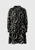 This black printed belted dress from our Et Vous collection blends modern elegance with effortless wearability. Featuring a fluid abstract print, this chic monochrome mini dress brings movement and character to a classic silhouette. The long sleeves and smart open collar add a refined touch, while the matching belt cinches the waist for a flattering, adjustable fit. Crafted from a woven fabric, the dress offers comfort with a polished finish. Pair it with heels or flats for a versatile look that works from day to evening.