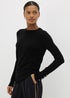 Update your staples collection with this versatile black round neck top, expertly crafted from a fine gauge knit fabric. Its classic silhouette offers timeless style, perfect for any occasion. Dress it up with a statement necklace and heels for a chic evening ensemble.
