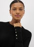 Learn moreUpdate your staples collection with this versatile black round neck top, expertly crafted from a fine gauge knit fabric. Its classic silhouette offers timeless style, perfect for any occasion. Dress it up with a statement necklace and heels for a chic evening ensemble.