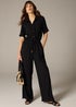Learn moreEffortlessly stylish and versatile, this Black Textured Jumpsuit is a must-have for any wardrobe. Crafted from a lightweight textured fabric, it offers a flattering and comfortable fit that’s perfect for both casual and dressy occasions. Designed with a sleek silhouette, it features a round neckline, short sleeves, and an elasticated waistband to define your shape. The wide-leg trousers add a touch of elegance, making it easy to dress up or down.