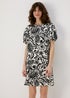 Et Vous Black & White Floral Puff Sleeve Mini Dress