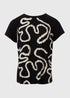 The Et Vous Black Wiggle Woven Front T-Shirt brings effortless elegance to your everyday wardrobe. Designed with a contemporary woven front featuring a unique wiggle pattern, this T-shirt combines sophistication and comfort in one stylish piece. Ideal for dressing up or down, it’s a versatile choice for various occasions. Dress it down with sneakers and a denim jacket for a casual look.