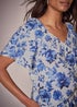 Learn moreA striking blouse adorned with an eye-catching, blue floral print, our tea blouse is a must-have for the season. Crafted from a soft and fluid fabric, it features a relaxed silhouette that effortlessly drapes over the body, providing ample comfort and freedom of movement. The blouse is designed with a classic v-neckline, short sleeves, and a straight hemline, ensuring a flattering fit that complements a variety of body types.