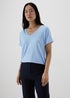 Learn moreUnleash your style with our Blue V-Neck T-Shirt. Crafted from a blend of high-quality fabrics, this tee promises both comfort and durability. The sky blue hue is complemented by the elegant V-neck design, offering a chic yet casual look. Effortlessly chic, simply tuck it into tailored trousers with ballet flats and layer beneath a blazer. Swap them out for denim cut-offs, trainers and a slouchy cardigan for a more relaxed feel.