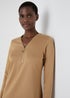 Learn moreEffortlessly chic and versatile, the Et Vous camel knee length jersey dress is a wardrobe must-have. Crafted from a luxurious blend of jersey fabric, this dress exudes comfort and sophistication, making it the perfect choice for any occasion. The added gold zip detailing adds a touch of style to this midi dress, making it a versatile piece to dress up or down. Pair with trainers and denim jacket for a casual look or pair with heels and a blazer for a smart dressed up look.