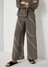 Step into effortless elegance with these chic co-ord trousers from our Et Vous collection. Crafted from soft, silky satin, they feature a black base with a subtle camel twill stripe. The wide-leg silhouette creates a relaxed, flattering fit that moves beautifully with every step. A smooth front waistband with elastic at the back ensures all-day comfort that will see you through work to weekend.