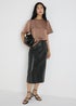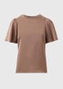 You will love our satin top in a luxurious shade of champagne. This top features a draped front of luxurious satin, and a back made from a soft and comfortable jersey fabric. It's the perfect combination of elegance and comfort with flowy short sleeves to add a touch of style and sophistication.