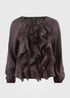 Spruce up day-to-night dressing with this chocolate brown statement blouse from our Et Vous collection. Crafted from a soft lyocell blend, it offers a fluid, lightweight feel that moves beautifully with you. The exaggerated frill detail creates a striking focal point, while the clean cream tone keeps the look refined and versatile. A delicate tie neckline and elasticated cuffed long sleeves complete the design.