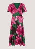Learn moreSmooth and luxurious, bring beautiful florals to your going-out collection with this dashing Et Vous dress. On a green base sits sophisticated pink florals that are sure to catch your eye, and the piece is fashioned with satin for terrific evening comfort. While the wrap front creates a feminine V-neck, the side tie detail and tiered design provide even more elegant style. Team the look with heels.
