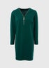 Effortlessly chic and versatile, the Et Vous dark green knee length jersey dress is a wardrobe must-have. Crafted from a luxurious blend of jersey fabric, this dress exudes comfort and sophistication, making it the perfect choice for any occasion. The added gold zip detailing adds a touch of style to this midi dress, making it a versatile piece to dress up or down. Pair with trainers and denim jacket for a casual look or pair with heels and a blazer for a smart dressed up look.