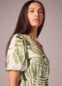 Et Vous's Tea Dress in green is a timeless and versatile piece that will transition effortlessly through your spring-summer wardrobe. Perfect for garden parties, weddings, and beyond, this delightful midi dress features an enchanting abstract leaf design. Crafted from a lightweight and fluid fabric, it drapes elegantly over your frame.