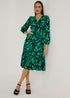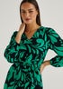 Spruce up your occasion wear with this stunning dress! Designed in gorgeous green and black shades, it features a subtle V neck, elasticated sleeves and a tie belt at the waist for a personalised wear. Cut from a soft and stretchy fabric, it includes a chic abstract print to put a smile on anyone's face! Model Height: 5ft 9 1/2.