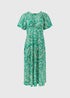 Et Vous Green & White Paisley Puff Sleeves Midi Dress