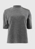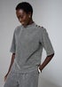 Bring a touch of understated glamour to your desk-to-dinner wardrobe with this timeless grey top from our Et Vous collection. Crafted from a soft, stretch fabric, it’s designed with a modern high neckline and short sleeves that offer a sleek, flattering shape. The standout detail is the row of statement buttons at the shoulder, adding a refined, contemporary twist to this effortless piece. Cut for a relaxed yet polished fit, it pairs perfectly with the matching wide-leg trousers for a coordinated look that transitions seamlessly from daytime plans to evening outings.
