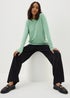Update your staples collection with this versatile green round neck top, expertly crafted from a fine gauge knit fabric. Its classic silhouette offers timeless style, perfect for any occasion. Dress it up with a statement necklace and heels for a chic evening ensemble.