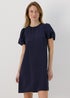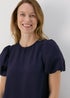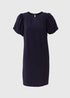 Learn moreThis effortlessly navy puff sleeve midi dress will take you from day to night. The loose fit allows for comfort all day long, and the cuffed puff sleeves adds a touch of femininity. The navy colour is versatile and can be dressed up or down. Featuring a key hole button fastening at the back and a sophisticated pencil silhouette. Crafted with soft and smooth fabric for a comfortable feel against the skin. For a casual daytime look, pair the dress with white sneakers and a denim jacket or for a more elevated evening look, add some sparkle with a pair of heels and statement jewellery.
