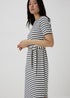 Learn moreBe effortlessly stylish with our Et Vous navy stripe jersey dress! This classic navy and white striped dress is perfect for any occasion. Crafted from a soft and comfortable jersey fabric, this dress drapes beautifully and ensures all-day comfort. The relaxed silhouette flatters your figure, while the tie front detail adds a touch of elegance. This dress can easily be dressed up or down with trainers or heels.