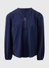This Et Vous Zip Front Blouse in Navy combines modern style with effortless functionality. Featuring a sleek zip-front design allowing you to adjust the v-neckline to your preference. The rich green hue adds a fresh, vibrant touch to your wardrobe, making it perfect for both casual and office wear. With its lightweight, breathable fabric and versatile style, this blouse is a must-have for creating chic, polished looks all year round. Pair with denim jeans, a crossbody bag and sneakers for a casual day out.