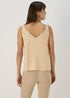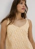 Learn moreAdd some flair to your wardrobe with this stunning cami top from Et Vous. This top features a nude base with white spots, creating a chic and timeless look. The v-neckline and thin straps accentuate your neckline and shoulders, while the soft and lightweight fabric ensures comfort and breathability. Whether you pair it with jeans, skirts, or shorts, this cami top will make you feel fabulous and fashionable.