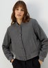 Learn moreAdd a cool and versatile piece to your outerwear collection with this charcoal bomber jacket. In a textured finish for added interest, it's complete with a button up fastening and two front pockets.