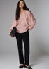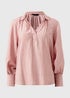 Make a statement in this charming Et Vous blouse. Designed with soft vertical striping, it brings a refined, elongating effect to the silhouette. The pretty pink blouse features a relaxed drape with voluminous puff sleeves that create a striking yet effortless shape, balanced by a gathered cuff and a subtle open collar V-neckline that adds a touch of polish. Crafted from a lightweight, fluid fabric, it moves beautifully and offers a comfortable, elevated fit. Perfect for pairing with tailored trousers, denim, or wide-leg styles, this blouse transitions seamlessly from day to evening with modern elegance.