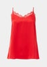 Learn morePut a chic twist on a classic with this gorgeous top from Et Vous. In red and providing soft comfort, the lace trim to the neckline provides extra prettiness, while the slim cami straps allow you to show off your shoulders when the temperature rises. Partner with shorts and sandals.