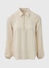 Embrace sophisticated style and effortless elegance with the Et Vous Stone Half Zip Blouse. This versatile blouse is designed for the modern woman who values both fashion and comfort, making it a perfect addition to your everyday wardrobe. The elegant versatile neutral stone shade, complements various outfits and accessories. This blouse offers a lightweight, breathable, and durable fabric that feels smooth against the skin. Featuring a chic half-zip front that allows for adjustable coverage, a relaxed collar and cuffed sleeves, designed to add a contemporary touch to this classic blouse design. Dress to impress by pairing it with tailored trousers and heels for an elegant evening ensemble or opt for a casual-chic look by teaming it with jeans, ankle boots, and a statement necklace.