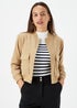 Learn moreCombine cosy comfort with chic style by treating yourself to this gorgeous jacket from Et Vous. Styled in versatile tan fabric and featuring a statement bomber appearance, signature design features include popper fastening buttons, two spacious pockets and a soft ribbed texture to the neck, cuffs and hem for added stretch. A wonderful layer for seeing you through the year. Model Height: 5ft 9 1/2.