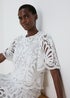 Learn moreThis sophisticated top exudes modern femininity with its intricate lace detailing. The combination of floral motifs and geometric shapes creates a visually stunning texture. The boxy silhouette offers a contemporary twist, while the short sleeves and cropped length make it versatile for both casual and formal settings. Layer it over a camisole or bralette for a chic look. Perfect for those who appreciate delicate craftsmanship and elegant design.