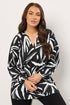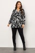 Evans Curve Black Abstract Print Notch Neck Jersey Blouse