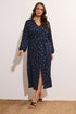 Embrace new styles this season with this figure-flattering spot print dress. Cut from a comfortable jersey fabric, this dress is both lightweight and stretchy. It features a front split design, side tie detail, notch neckline and long cuffed sleeves. Wear with your choice of trainers or boots to effortlessly dress this look up or down. Model is 5'10.5"/178cm and size UK 16/EU 44.