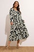 Evans Curve Black Contrast Floral Jersey Crepe Dress