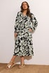 Introducing our must-have monochromatic midi dress! Crafted from a crepe jersey fabric, this dress perfectly fuses fashion and function for timeless versatility. It features a contrast floral print, tie neck fastening, two side pockets and long cuffed sleeves. Simply style with boots for a classic yet contemporary look. Model is 5'10.5"/178cm and size UK 16/EU 44.