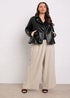 Welcome a new season edge to your wardrobe with this staple jacket. Cut from a sleek faux leather fabric, this jacket fuses fashion and functionality. It features a biker design, silver-tone zip fastenings and long sleeves. Layer over any outfit to effortlessly elevate your look. Model is 5'10.5"/178cm and size UK 16/EU 44.