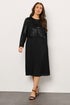 Elevate your partywear with a new addition to your dress collection. Crafted from a stretch jersey material, this dress seamlessly blends comfort and style - perfect for all your evening plans. It features a sequin embellished overlay, pleated skirt, back keyhole fastening and long sleeves, complete in a midi length. Pair with heels for a look you can stand out in all season! Model is 5'10.5"/178cm and size UK 16/EU 44.