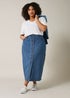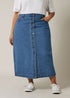 Evans Curve Blue Button Through Denim Maxi Skirt