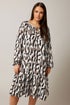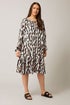 Take a walk on the wild side this season with this must-have dress. Crafted from a breathable woven fabric, this dress in uncompromising in comfort and style. It features an animal print, a flattering tie neckline, long cuffed sleeves and a tiered design. A simple footwear change can suit this dress to any occasion, choose between your choice of trainers, heels or boots! Model is 5'10.5"/178cm and size UK 16/EU 44.