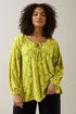 Evans Curve Chartreuse Green Floral Burnout Blouse