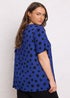 Evans Curve Cobalt Blue Crepe Spot Print Top