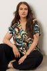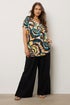 Timeless and versatile, this figure-flattering top is set to be a wardrobe favourite! Crafted from a stretch jersey fabric, this top is the perfect pick for comfort and ease. It features a smudge print, angel style sleeves and a pleat front design. Pair with your choice of linen trousers or jeans, for an effortless everyday look. Model is 5'10.5"/178cm and size UK 16/EU 44.