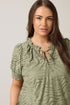 Evans Curve Khaki Green Burnout Print Tie Neck Blouse