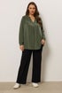 Evans Curve Khaki Green Notch Neck Utility Shirt